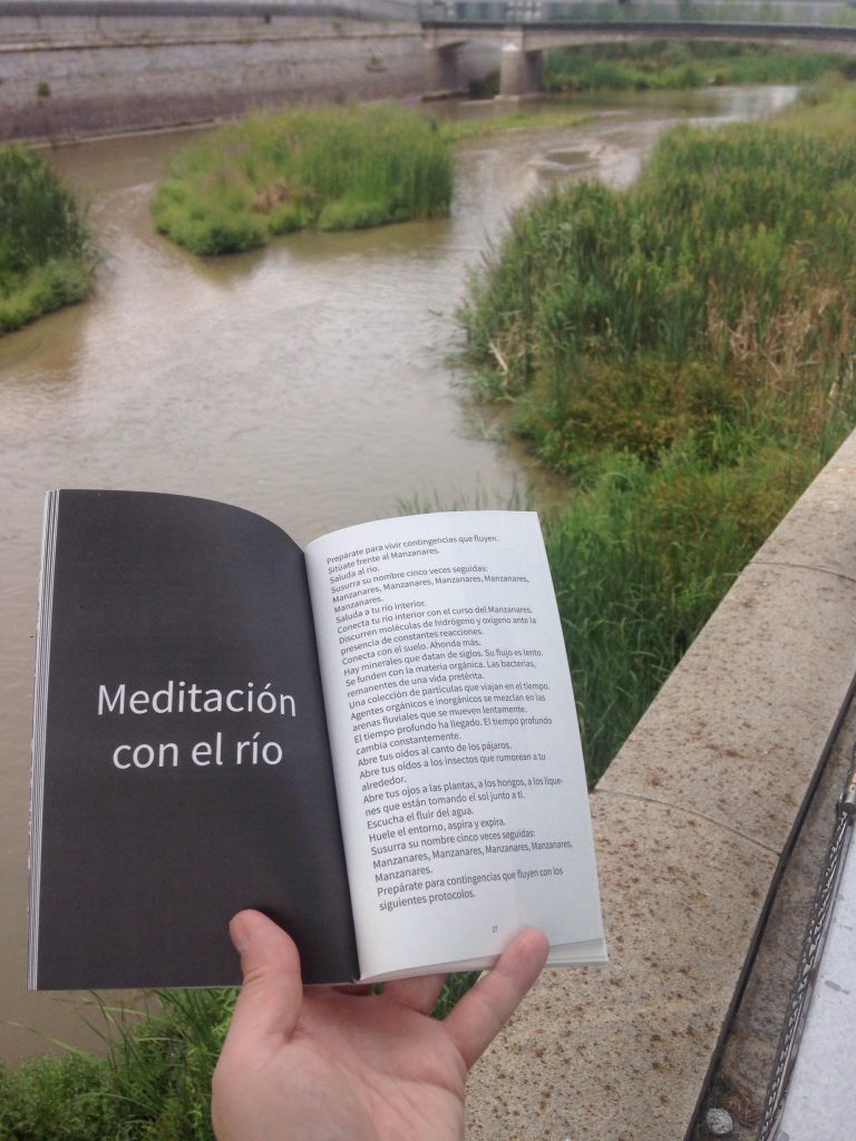 Partiendo del entorno del río Manzanares de Madrid, Riología propone estudiar los espacios limítrofes entre naturaleza y ciudad. El proyecto se compone de tres partes. Una acción de ciencia ciudadana con 600 voluntarios para el análisis del ecosistema del río. La publicación 'Riología' producida para dicho análisis que prototipa el proceso de investigación científico-artística y cuenta con la colaboración de entidades como Ecologistas en Acción o SEO Birdlife. Y una obra de arte que indaga en la memoria profunda de los ecosistemas fluviales.